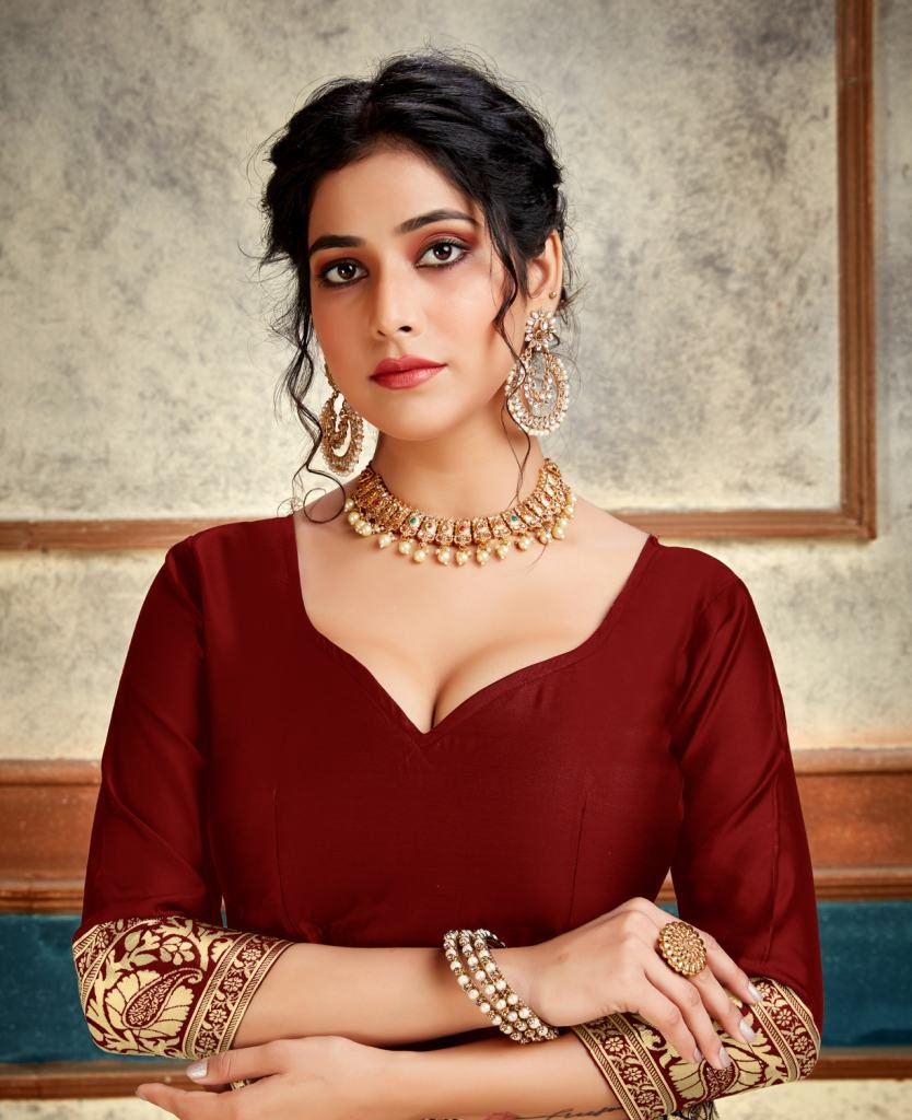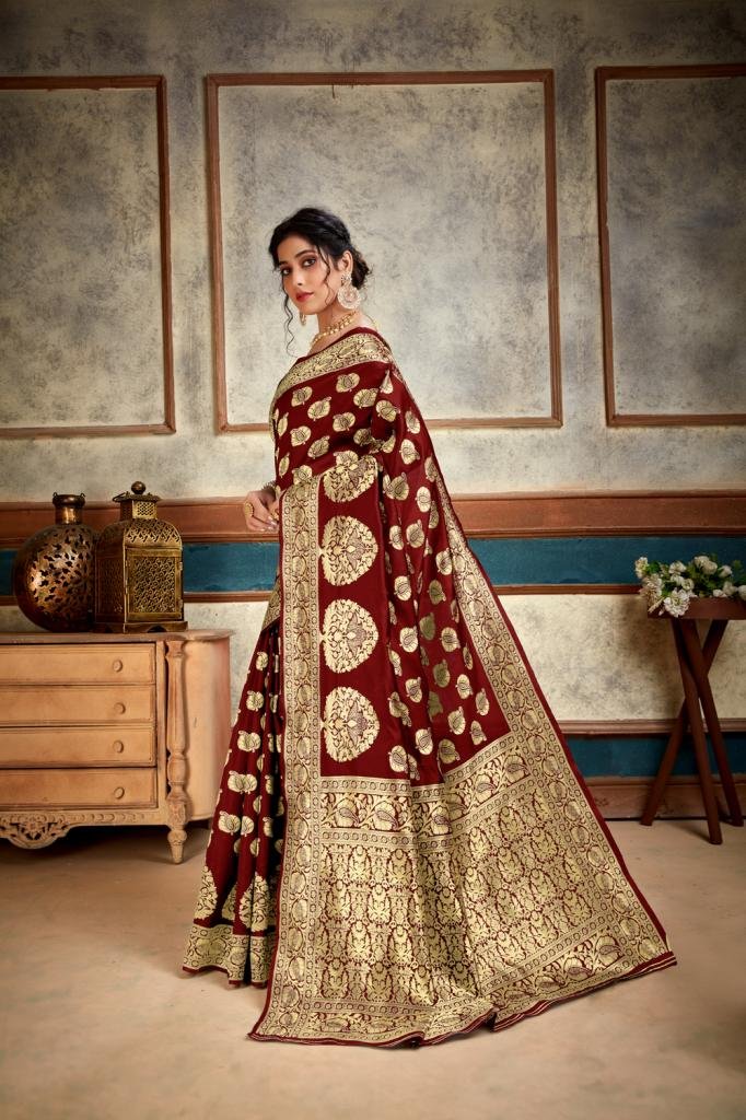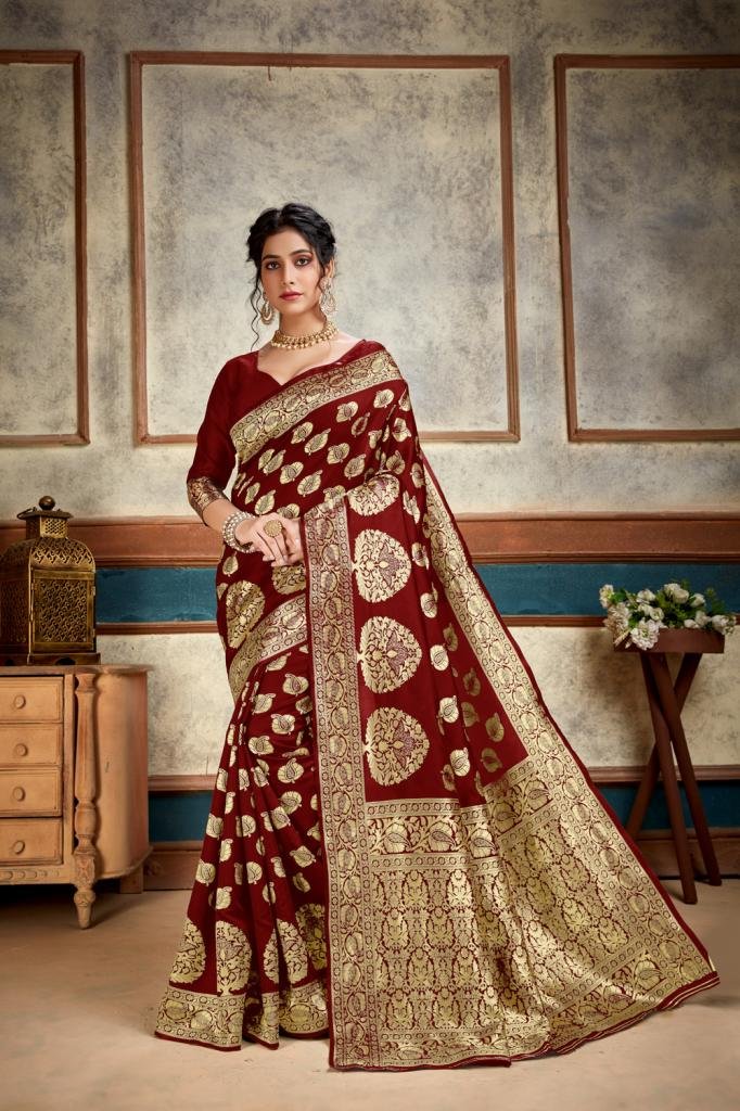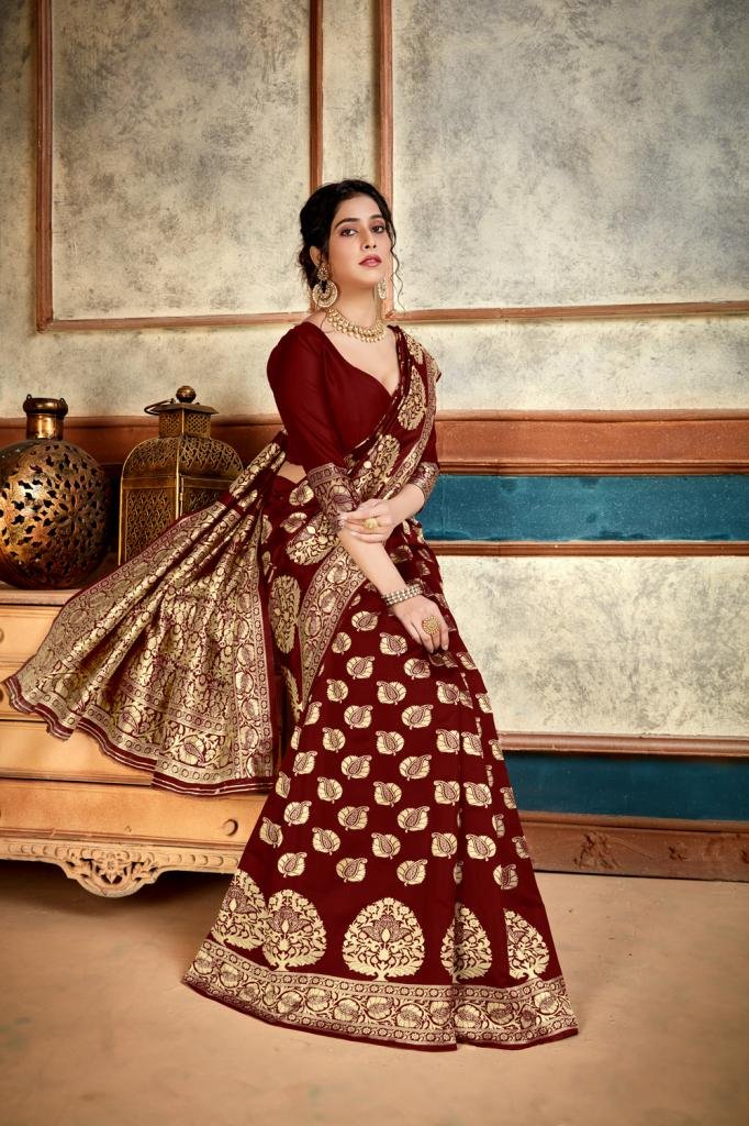 Buy Online Aakrti Lichi Silk Maroon Colour Saree At Best Price From Surati Fabric.