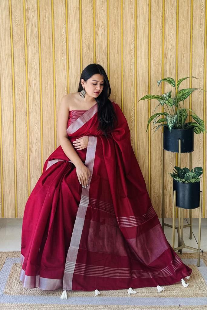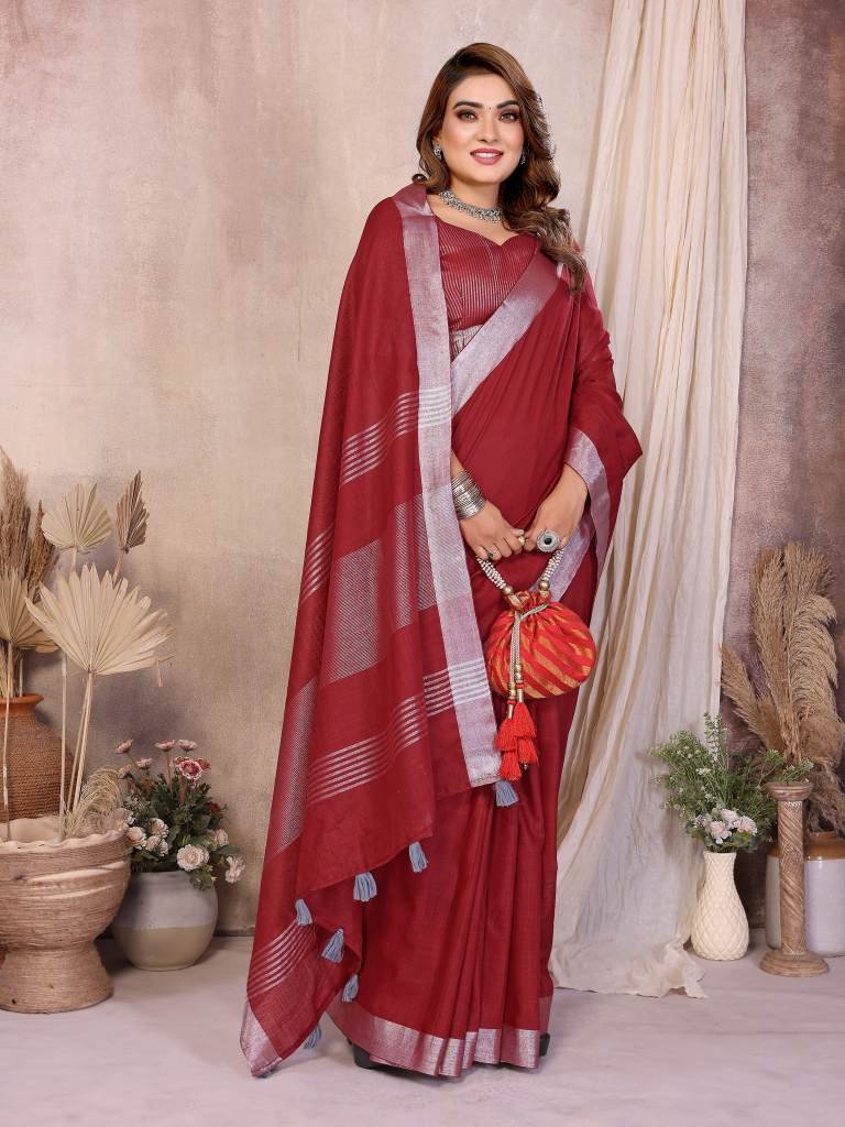 AMANATCollage & Office Wear CollectionMaterial : Beauty Soft Leaf Linen By Cotton Saree With Silver Jari Border And Silver Border Blouse?Fine And First Quality