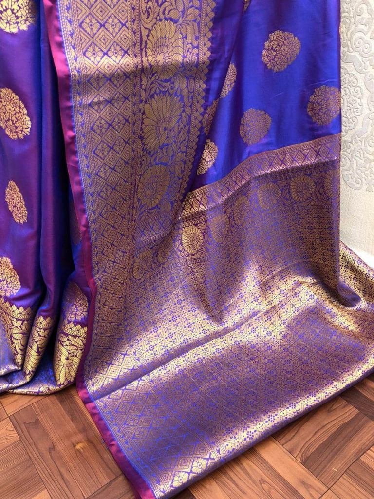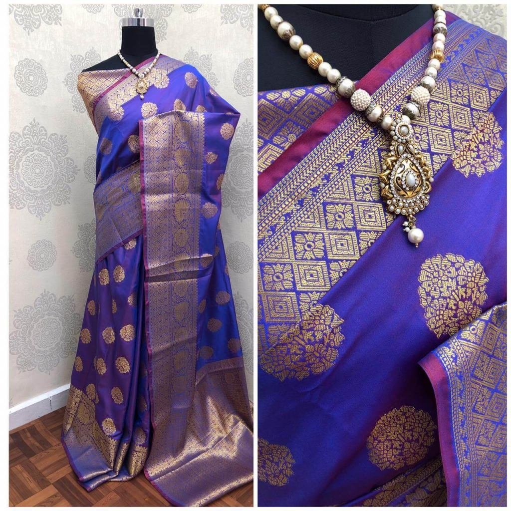 Banarasi Handloom Weaving Silk Saree With Big heavy zari boder and rich and contrast Pallu full wiwing zari brocket Blouse n All Over Zari butta Weaves