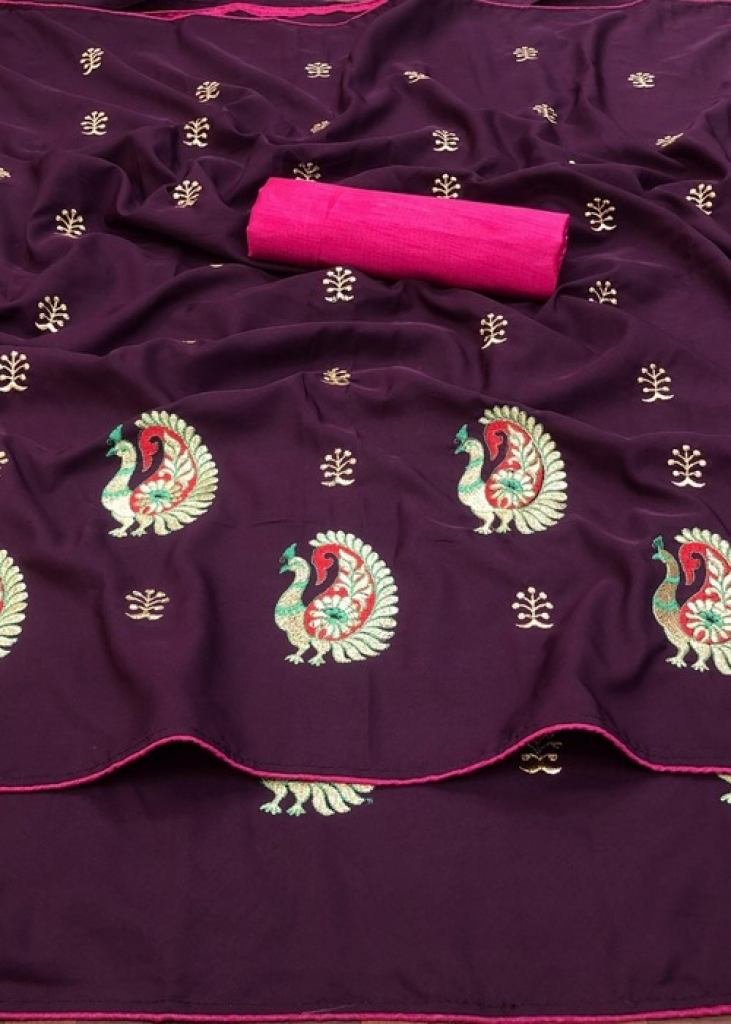 Buy Online Beautiful Indian Glory More Butta Crape Silk Wine Color Saree At Best Price From Surati Fabric.