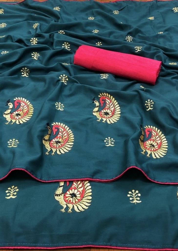 Buy Online Beautiful Indian Glory More Butta Crape Silk Rama Color Saree At Best Price From Surati Fabric.