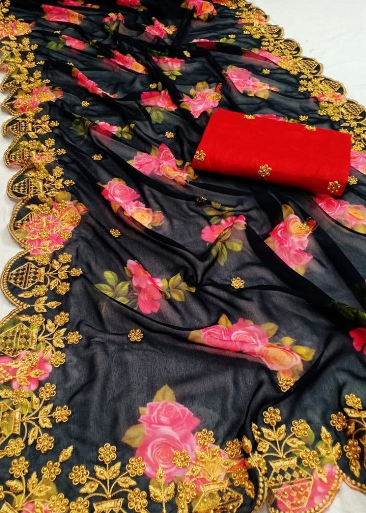Here we go with beautiful pure Gseorrgte digital Printed Hand Work sarees