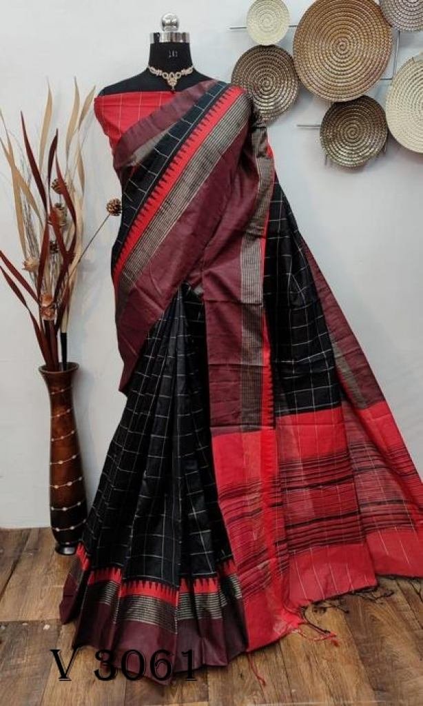 Raw silk weaving saree with temple woven border and all over checks weaving with contrast blouse piece