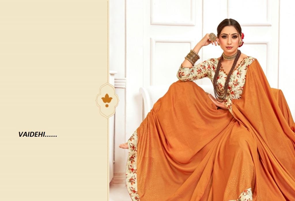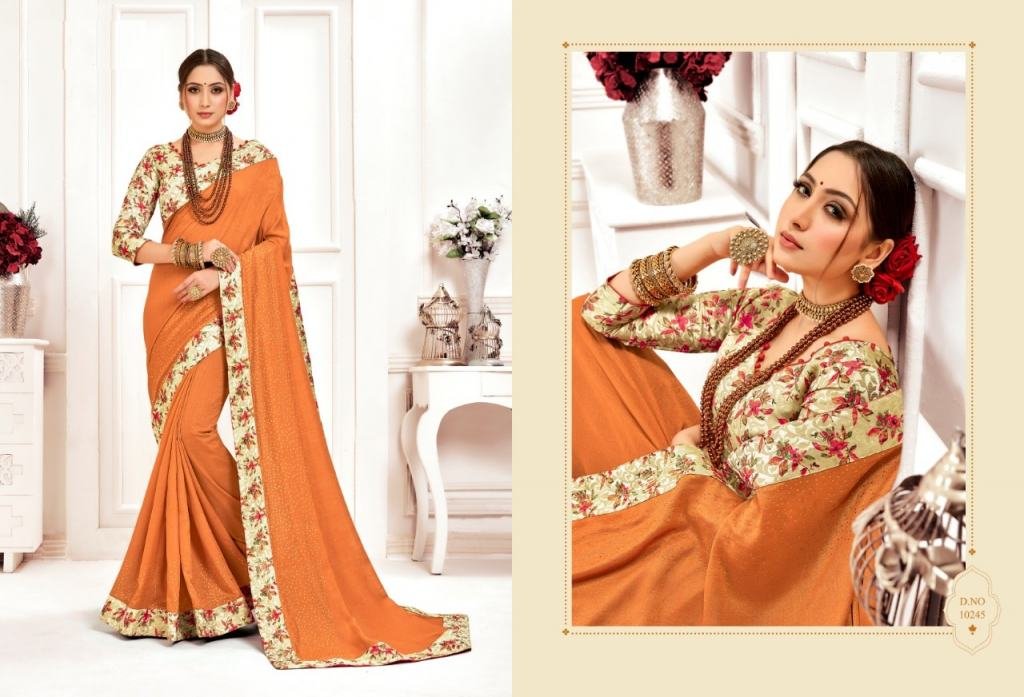 - Fabric - Saree - Silk Fabric with digital silk border & tara-stone work, Blouse - Digital Silk-floral print