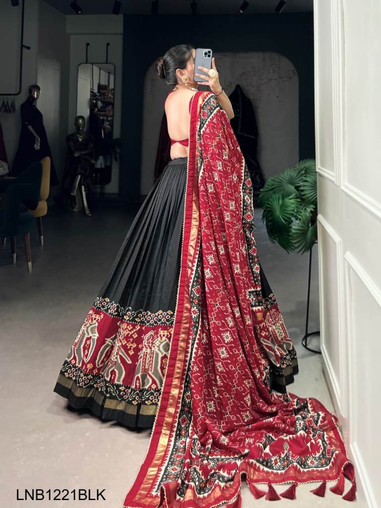 Dupatta work : Patola Print With Gotta Patti Lace Border also comes with tassels