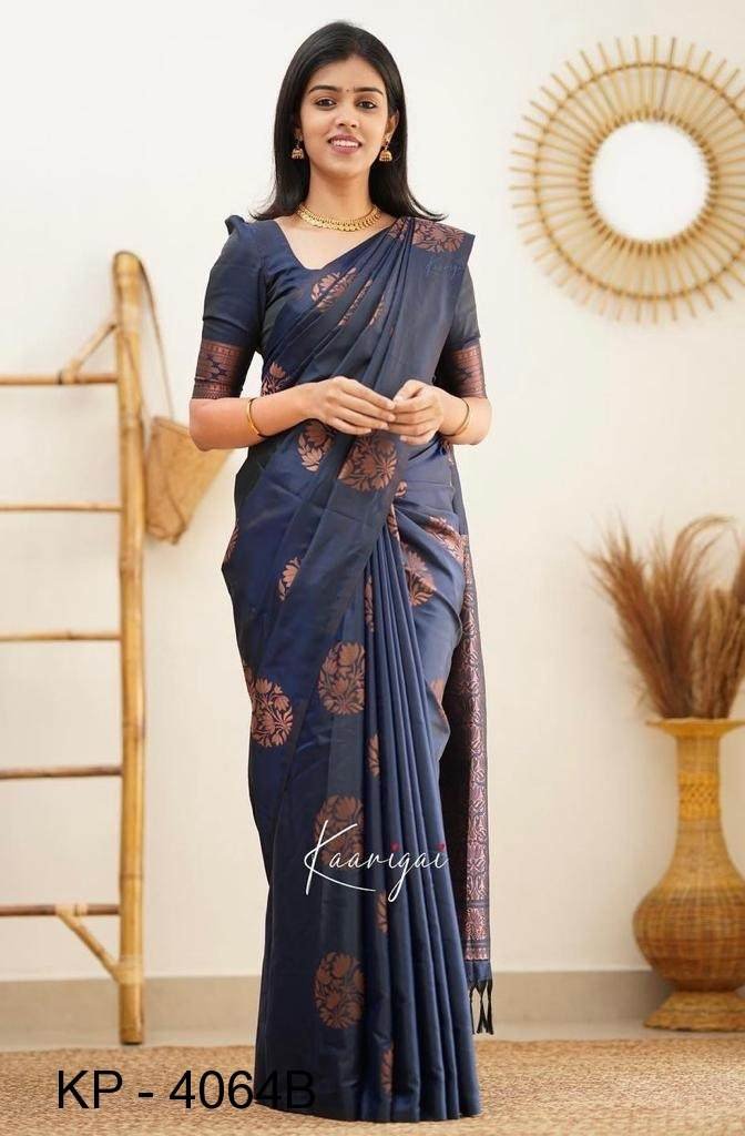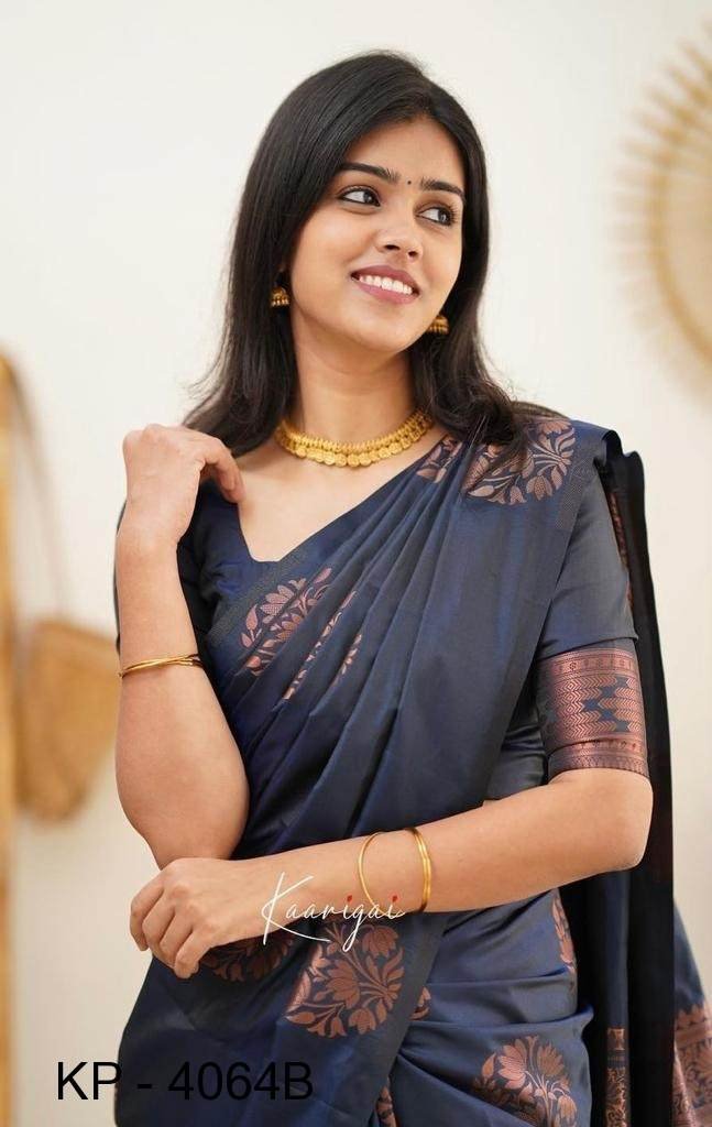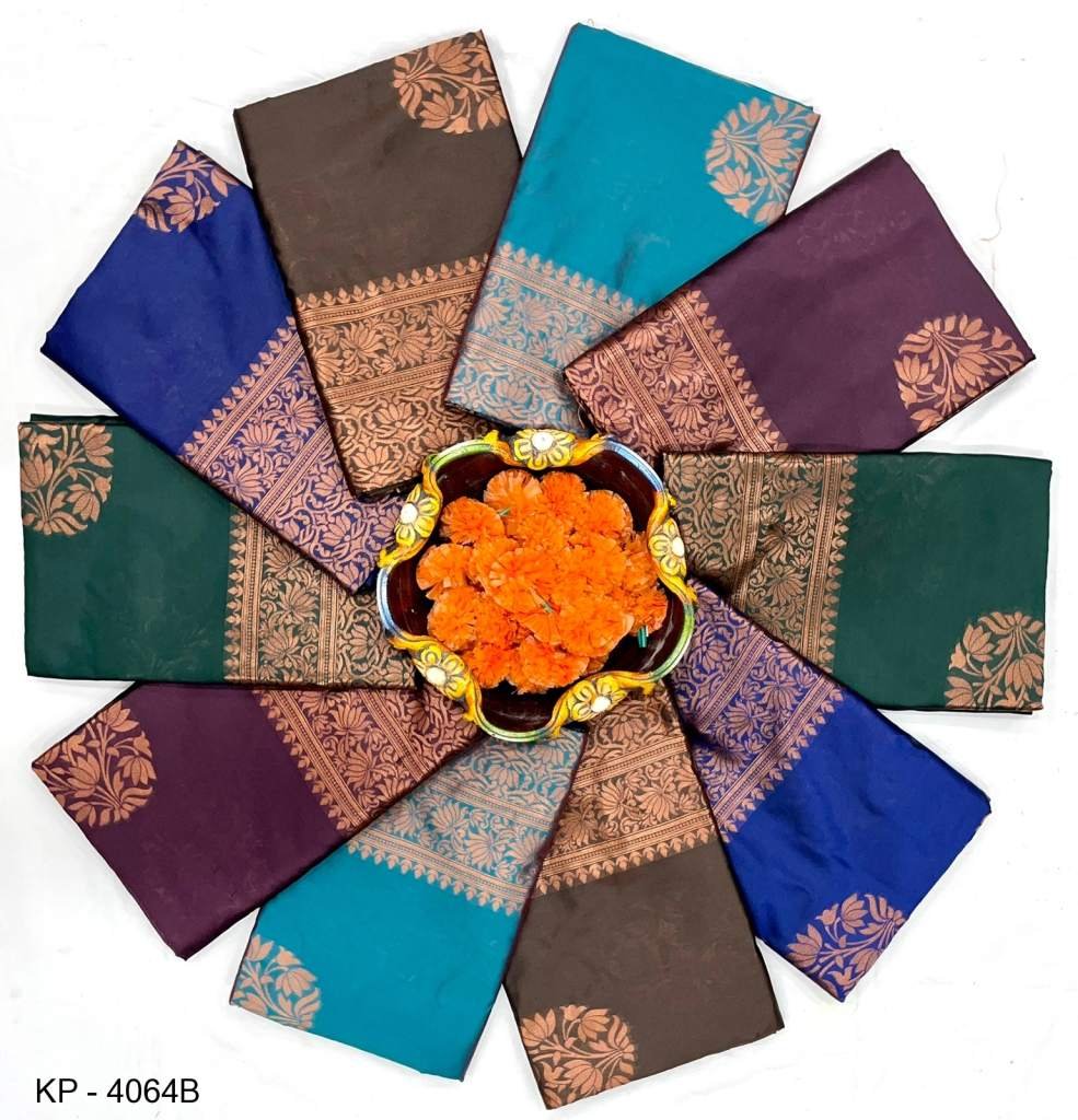 ???? BRAND :- KP CREATION ???? ???? KP - 4064 ????FABRIC : SOFT LICHI SILK CLOTH.DESIGN : BEAUTIFUL RICH PALLU & JACQUARD WORK ON ALL OVER THE SAREE.BLOUSE : CONTRAST EXCLUSIVE JACQUARD BORDER.
