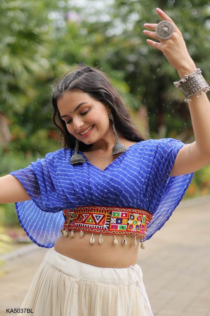 Fabric & Work:- Leheriya Print work with kutchi patchework in Faux Georgette.
