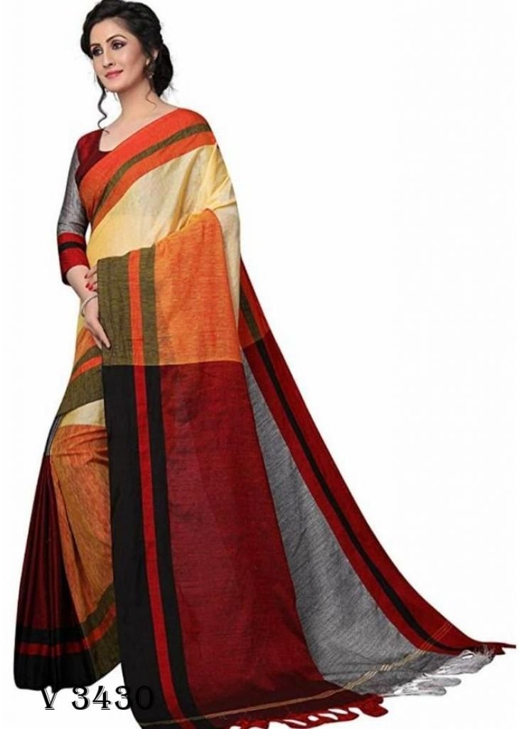 Cotton With Pure Weaving Red & Off White Color Saree By surati Fabric