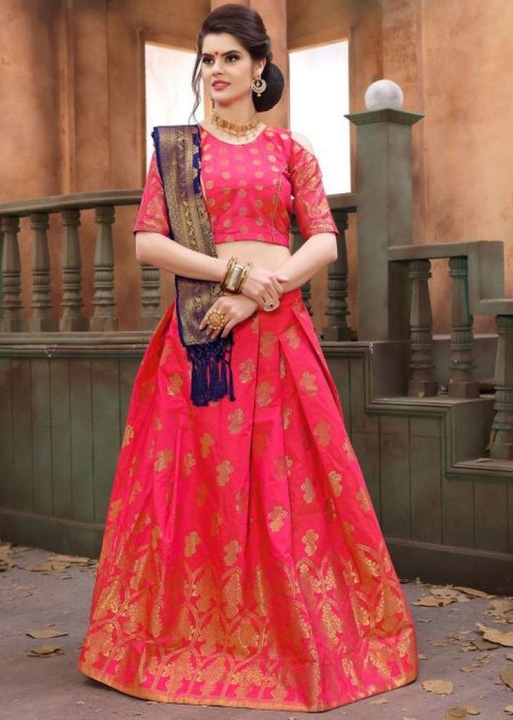 BUY ONLINE DESIGNER SOFT TIFI SILK LEHENGA NAVY BLUE WITH RANI AT BEST PRICE BY SURATI FABRIC.