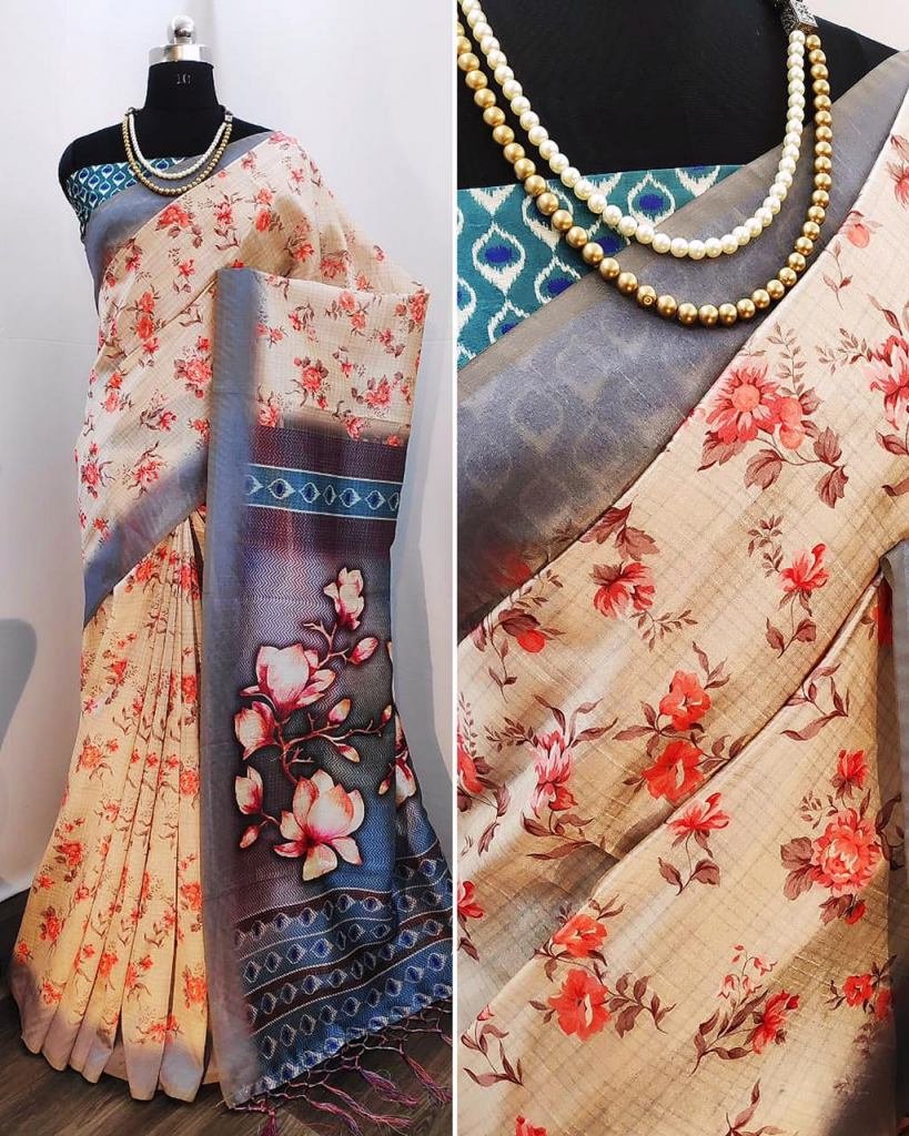 - Saree details : amezing digital print tussar silk saree with contrast matching blouse