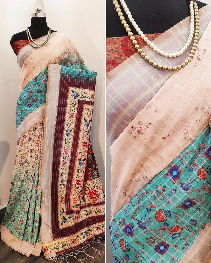 - Saree details : amezing digital print tussar silk saree with contrast matching blouse