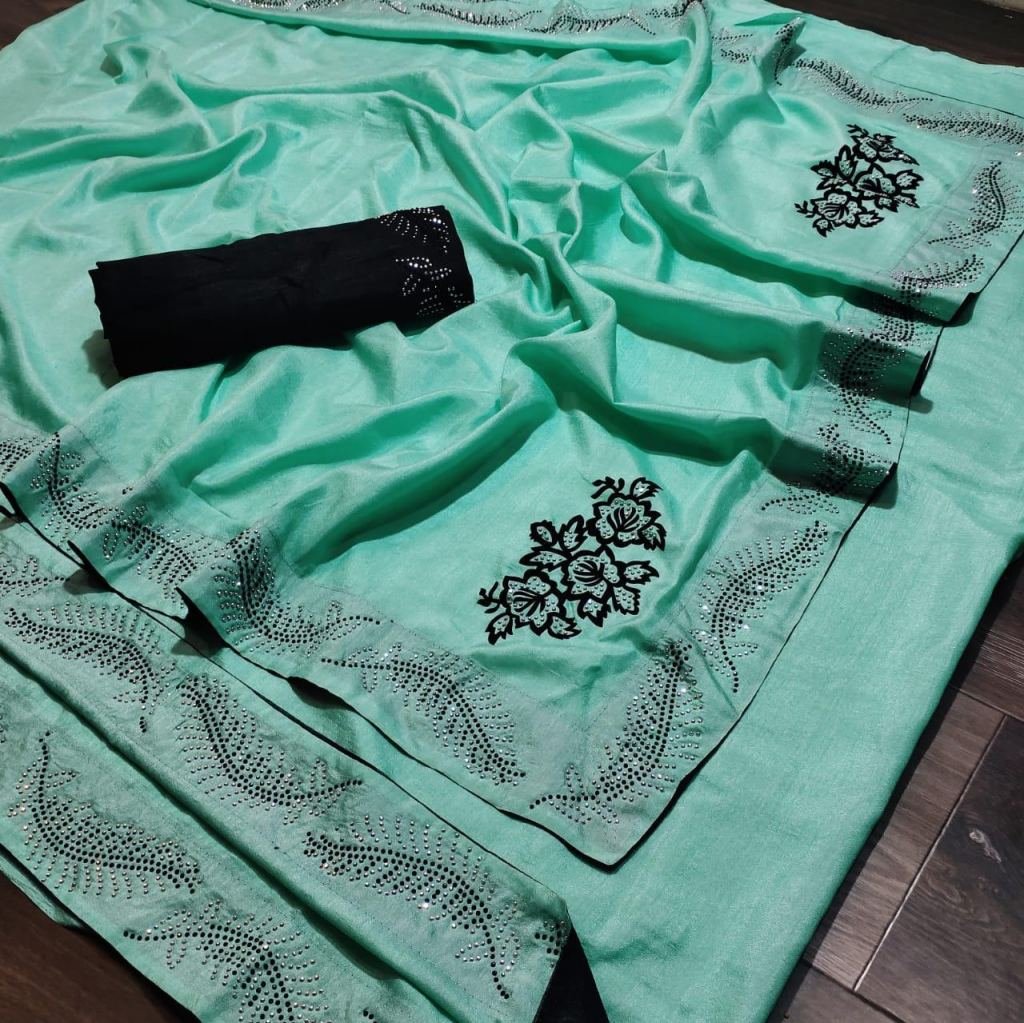 Dola Silk Purewith Stone Diamond Work Grass Green Colour Saree