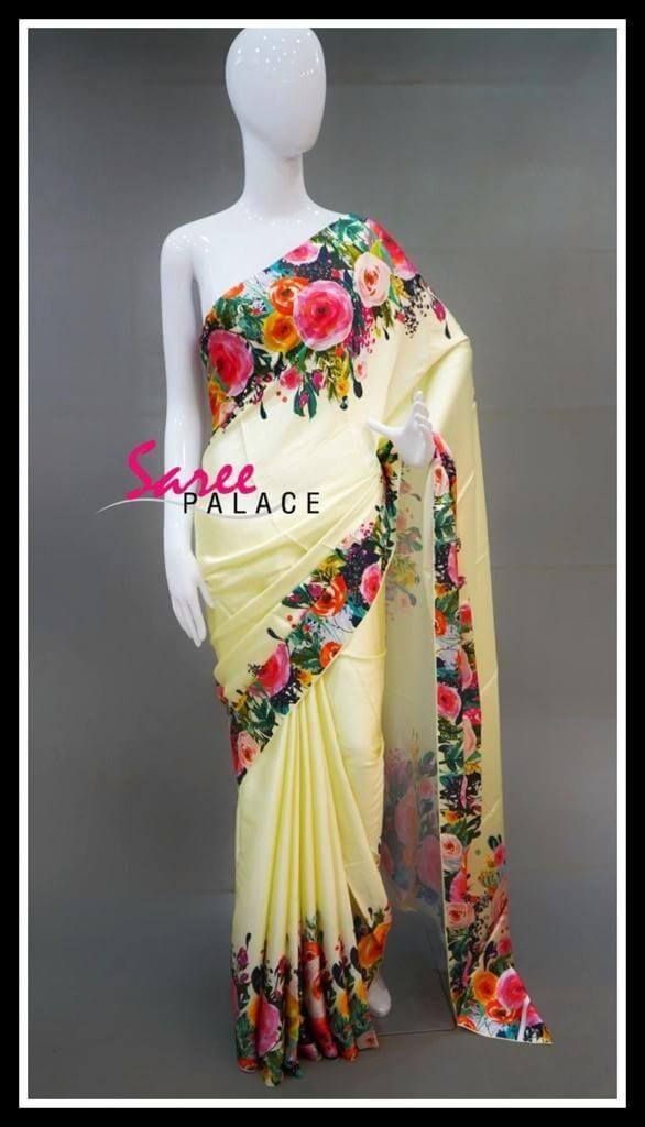 - Material: Orginal Satin silk with digital printing and fancy pallu designing -