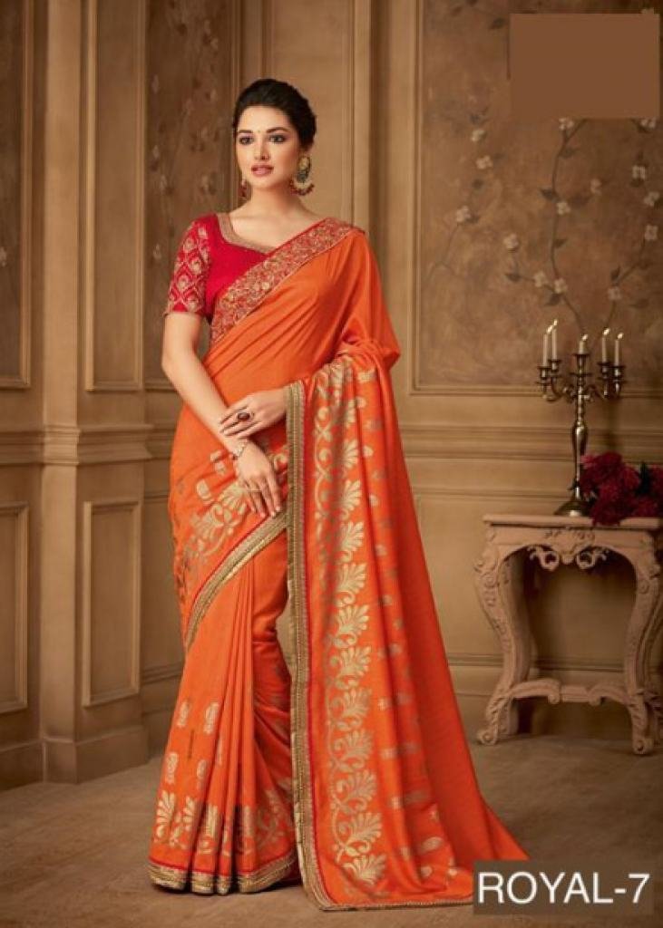 Buy Now Royal Fancy Party Wear Designer Orange Color Royal Catalog Saree From Surati Fabric At Wholesale Rate.
