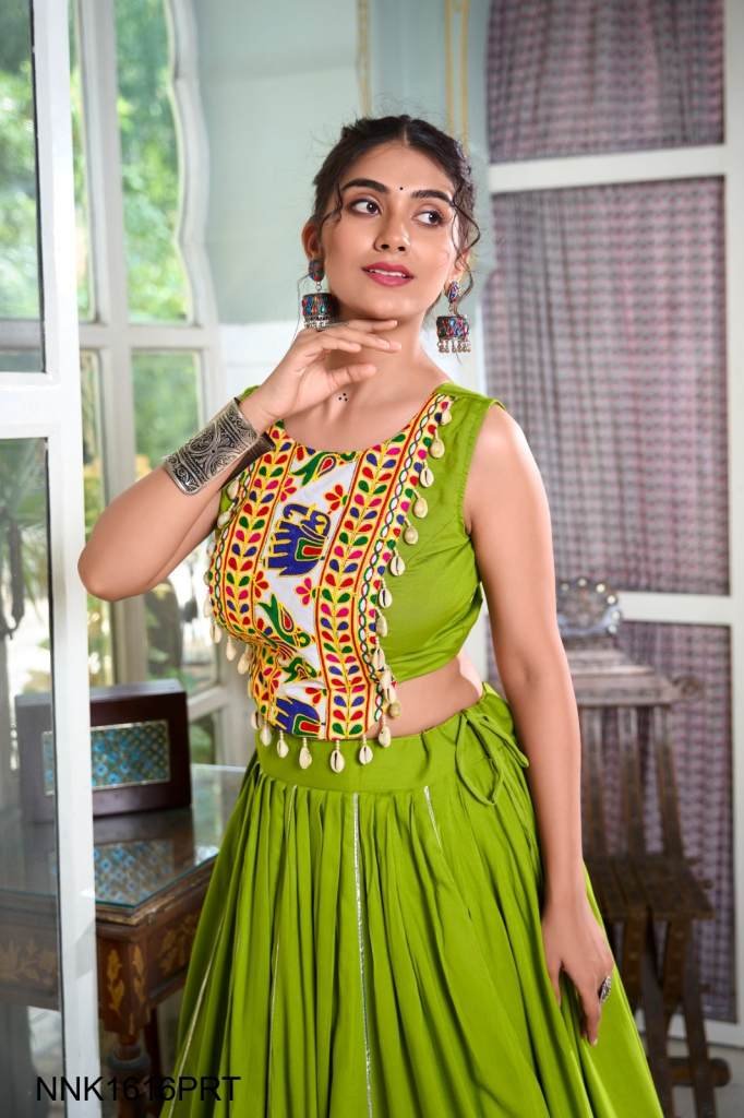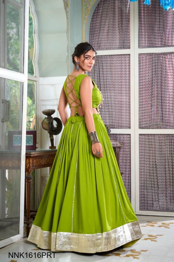 Lehenga Work : Plain And Lace Border With Gotta Patti Touch Up