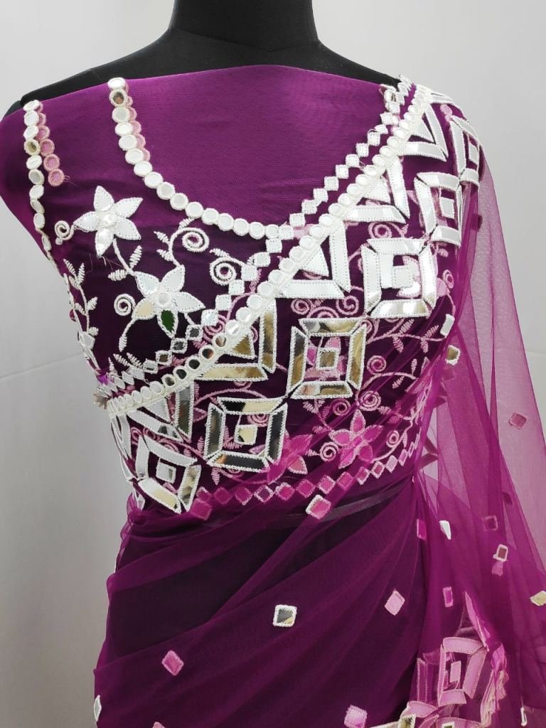 Blouse Of Net with Heavy Embrodery work nd MIRROR creamic work on Blouse