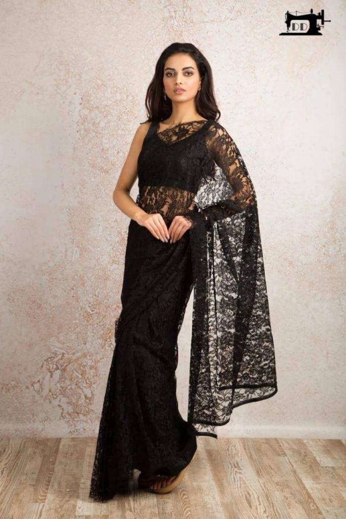- Saree-heavy chantley net saree all over 5.5 meter with heavy pipping on the sides