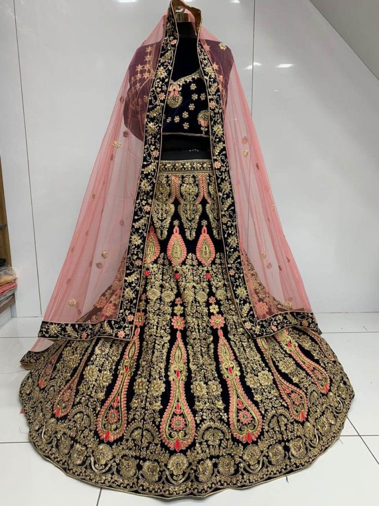 Bridal heavy embroidery lehenga choli in heavy 9000 velvet.