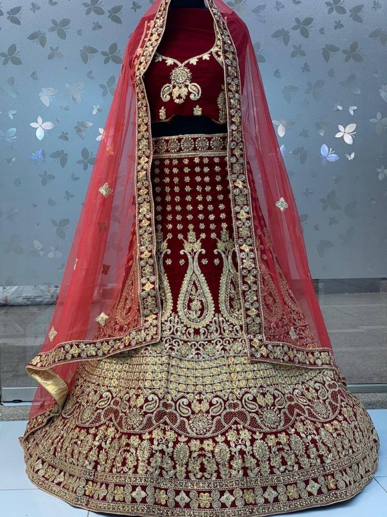 Bridal heavy embroidery lehenga choli in heavy 9000 velvet.