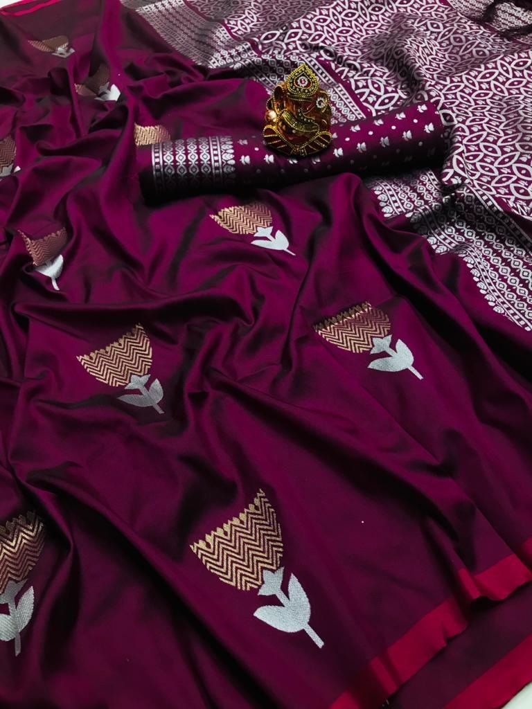 Fabric : LICHI SILK SAREE WITH WEAVING SILVER AND GOLD JARI & EXTRA ORDINARY DESIGN WITH JALAR