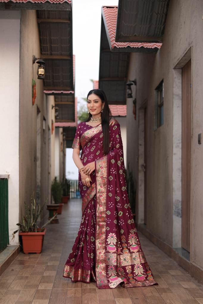Pure Bandhej Silk Saree Made By Original Bandhej With Matka Border With Zari Weaving Rich Pallu Saree With Beautiful Bandhej Design And Having A Rich Pallu