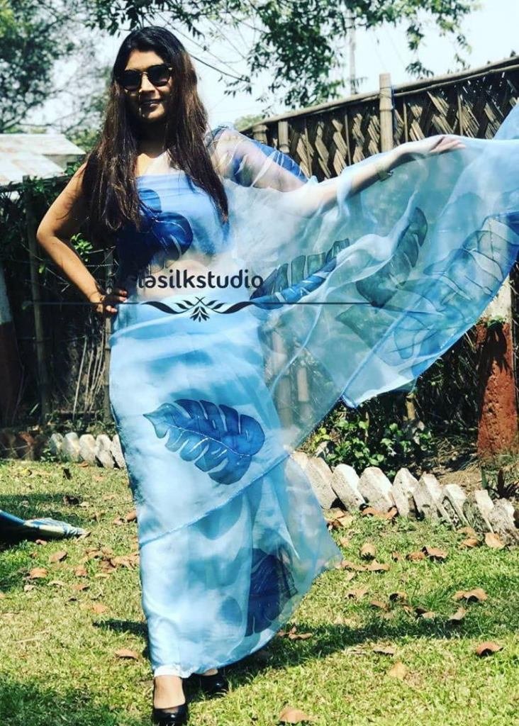beautiful Saree on premium Organza fabric with Digital print and Banglory blouse.