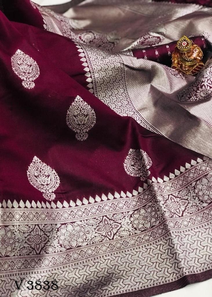 Khwaish Soft Banarasi Silk Saree In Wine Color By Surati Fabric
