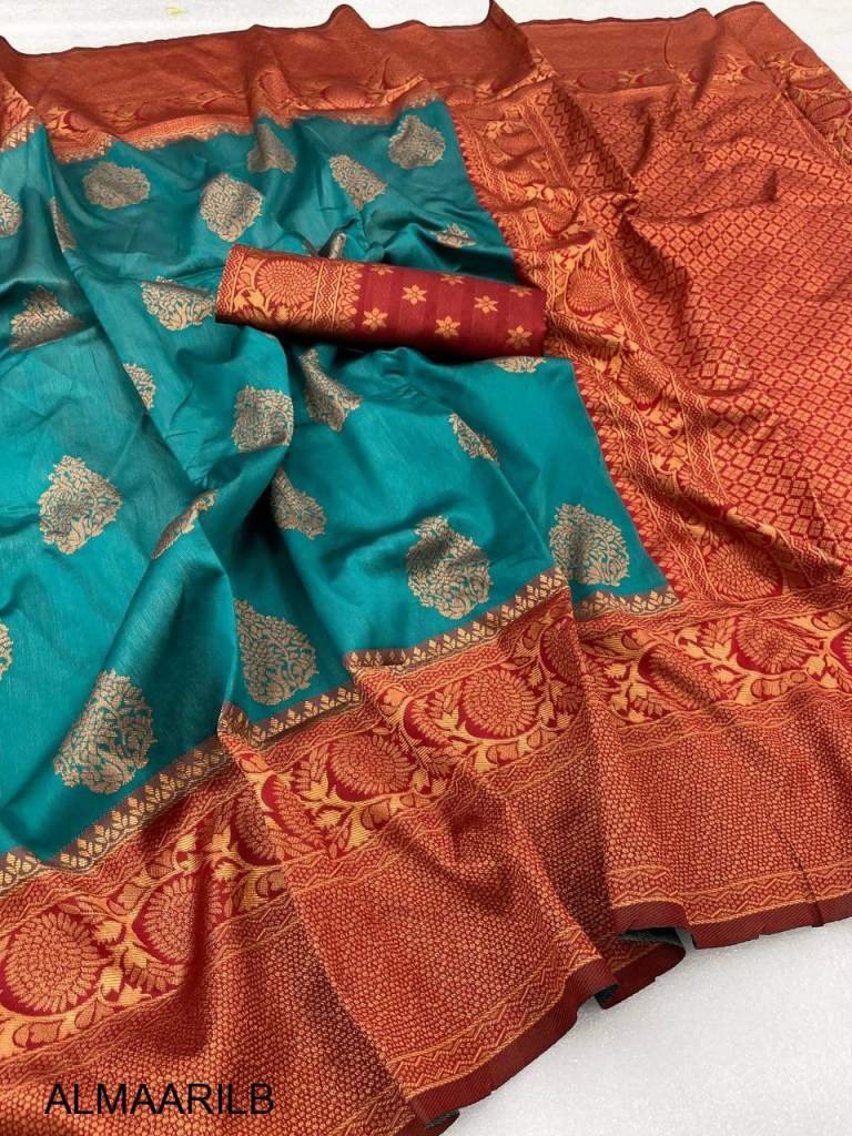 Silk Saree from the ALMAARI store is adorned with beautiful Zari work in form of traditional motifs. This beautiful saree is elegantly decorated with gorgeous Solid Jacquard weave that gives a perfect look to the outfit.
