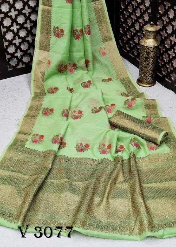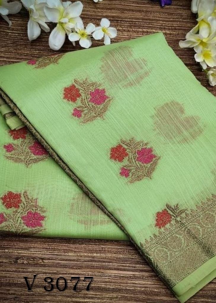 Light weight Linen Cotton saree with antic Zari Weaving Border and Pallu and Meenakri Motifs all over.
