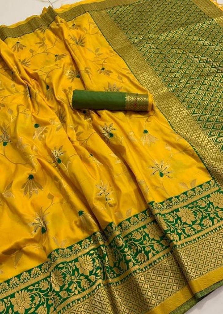 Buy Online Surati Fabric Lotus incredible weaved pure katan silk Yellow Color sarees At Best Price From Surati Fabric.