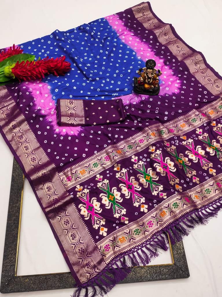The Superior Soft Silk Bandhej Saree That Has Multicoloured Dying And Soft And Easy Flowy