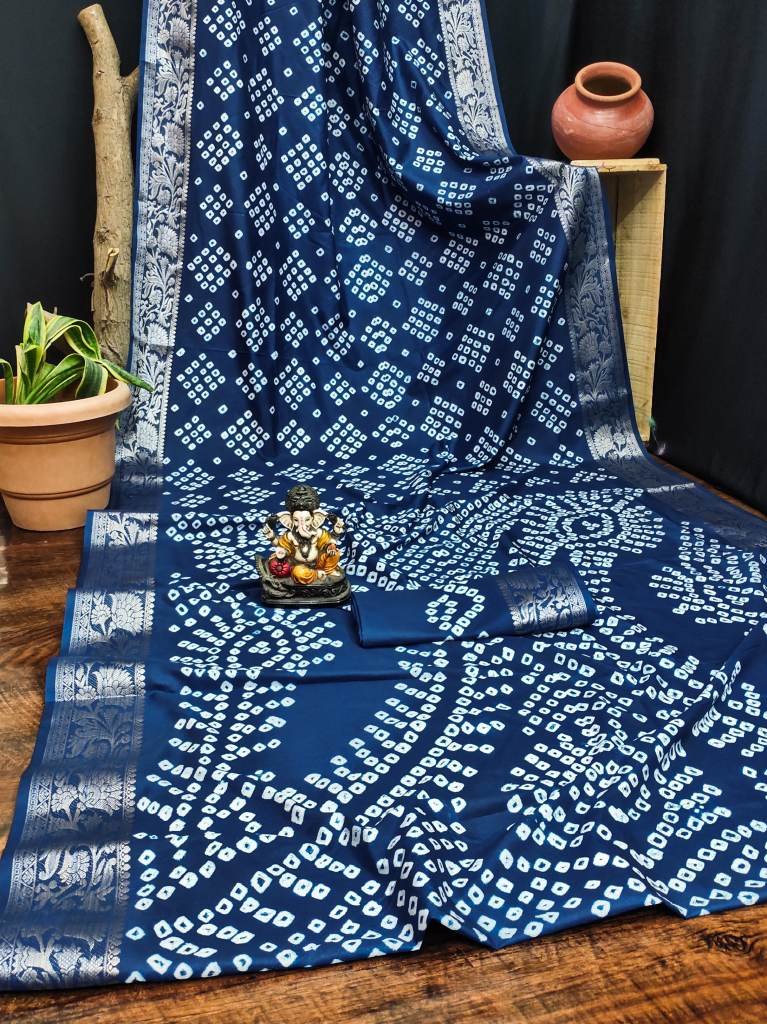 MORPANKH New Premium And High Quality Comfortable Handmade Bandhej Silk Drapes That Is Super Stylish And Pretty In Navy Blue