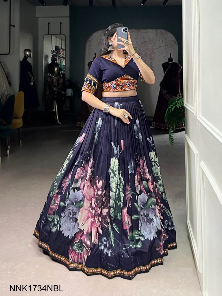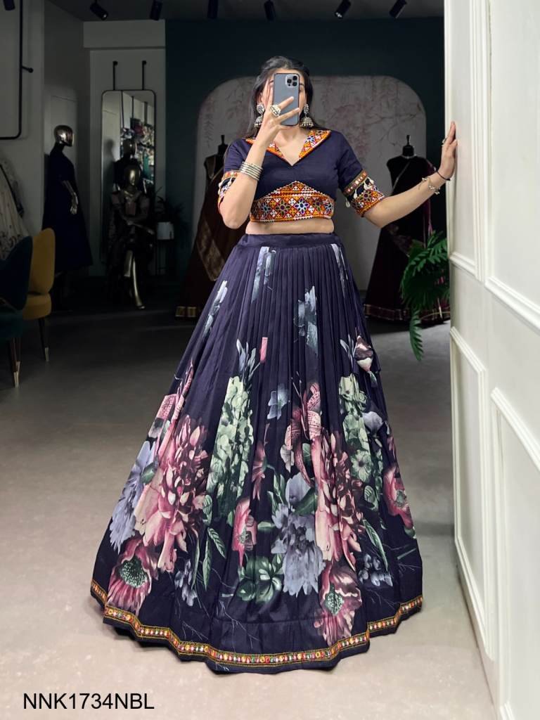 Lehenga Work : Floral Print With Paper Mirror Lace Touch Up