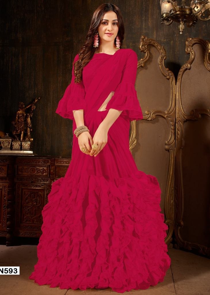 HAVE A NEW FABULOUS ROOHI RUFFLE SAREE IN ATTRACTIVE COLORS FROM SURATI FABRIC.