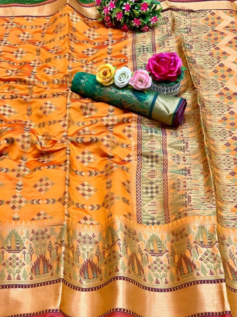 PATOLA SILK SAREE WITH STYLIST PALLU AND PRINTED BLOUSE FOR SPECIAL OCCATION .