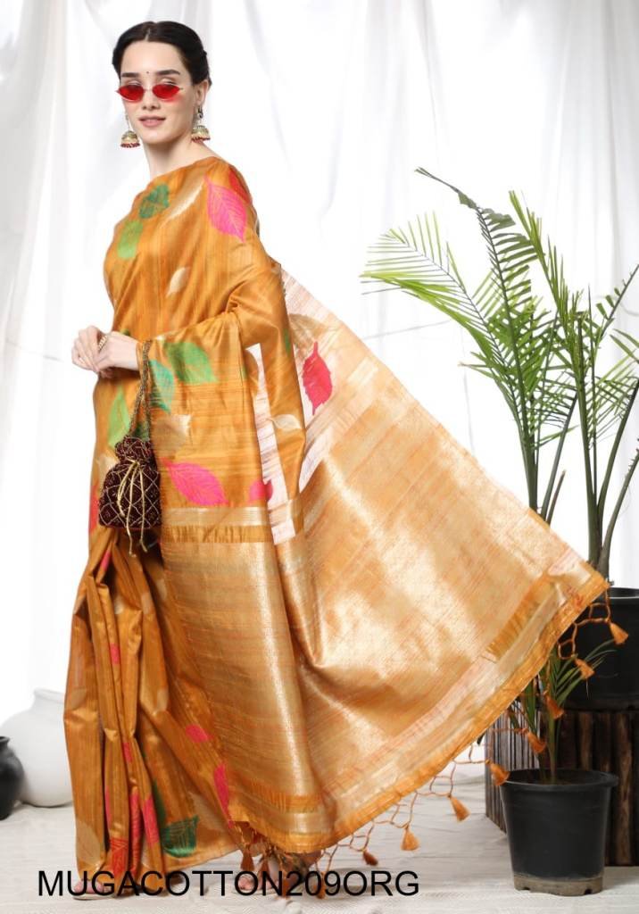 Premium soft muga Cotton saree with Colourfull weaving ikkat border and all over resham weaving butties and classic colourfull weaving pallu and fancy tassels with Contrast blouse piece