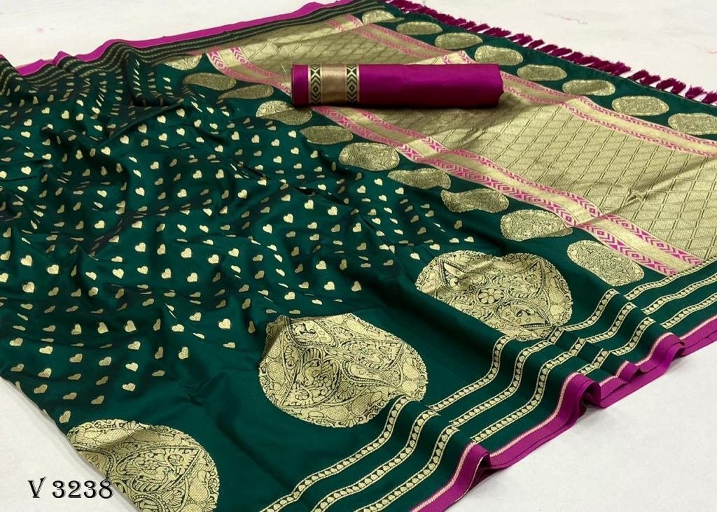 Pure Banarasi Soft Silk Green Saree By Surati Fabric