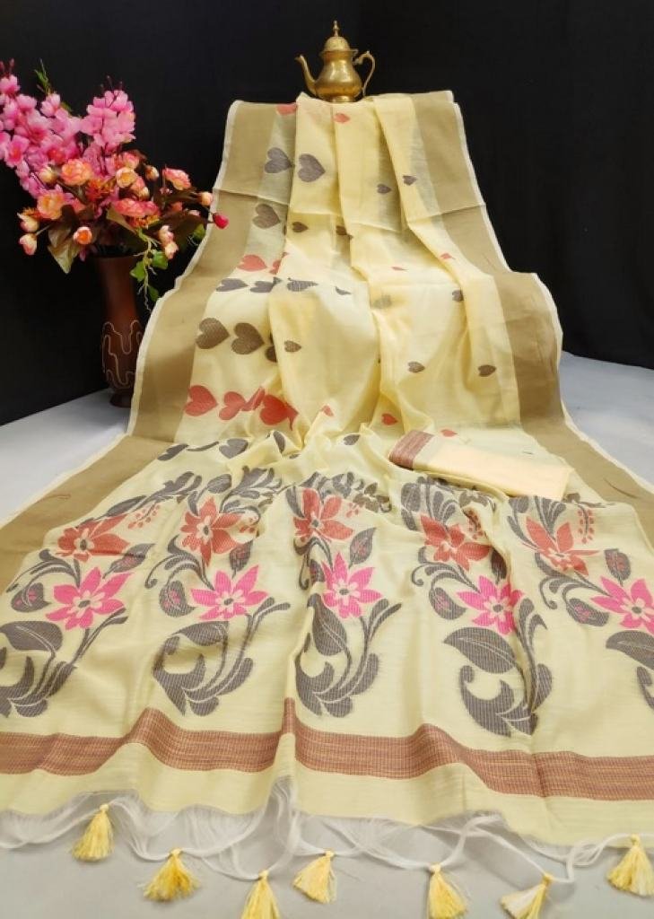 New ArrivalPure Chanderi Cotton Saree with Beautiful Jacqurad work and Zari Woven border with matching Blouse pieceReady stock availablePrimium quality assured