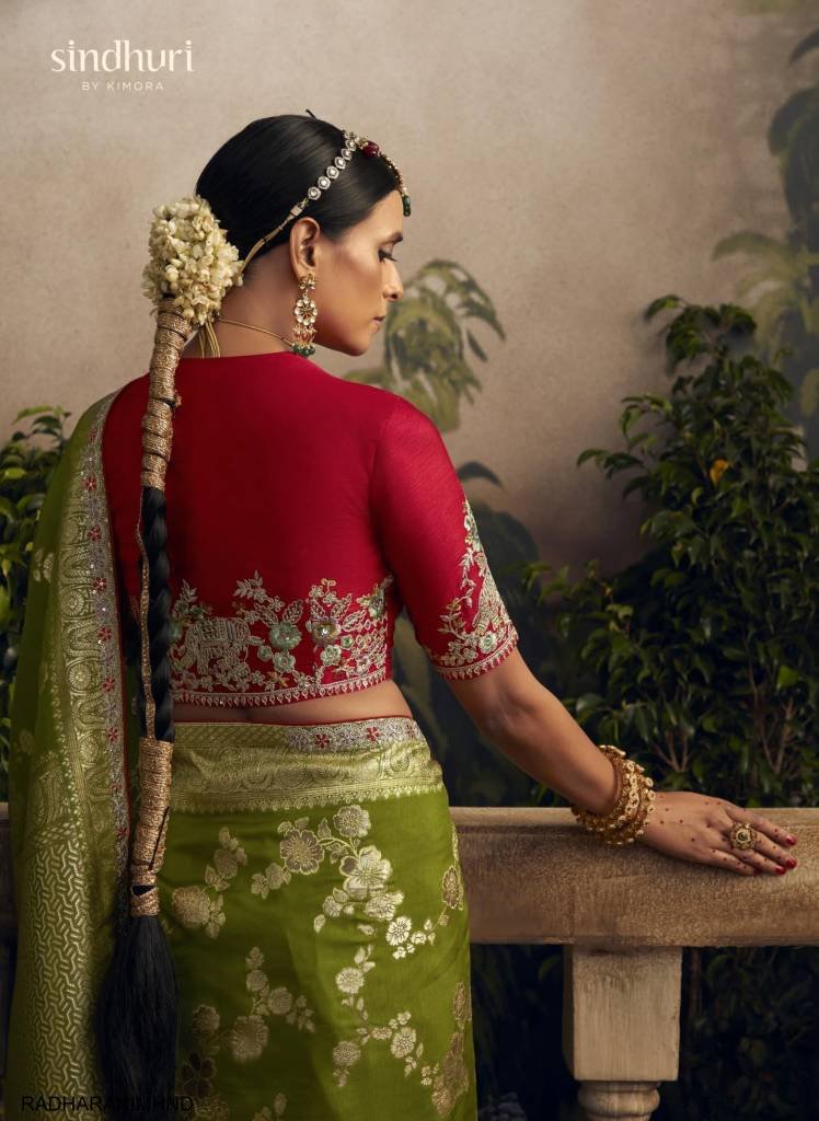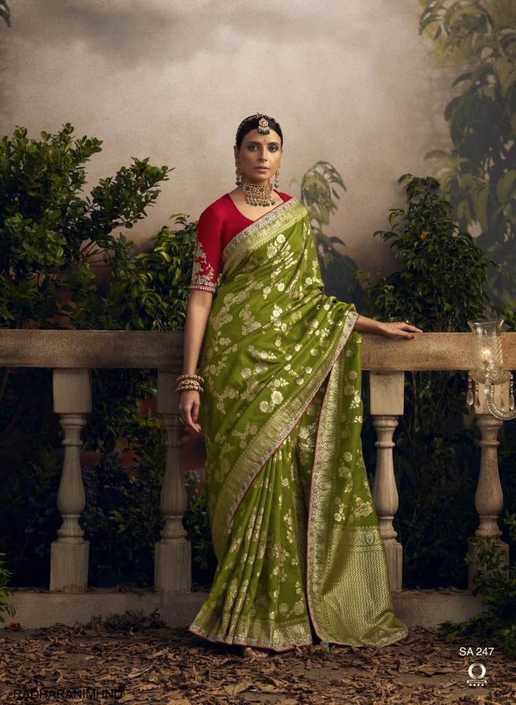 Pure Dola Silk with Fancy Based Fabric & Designer Embroidery Worked border & Designer Blouse