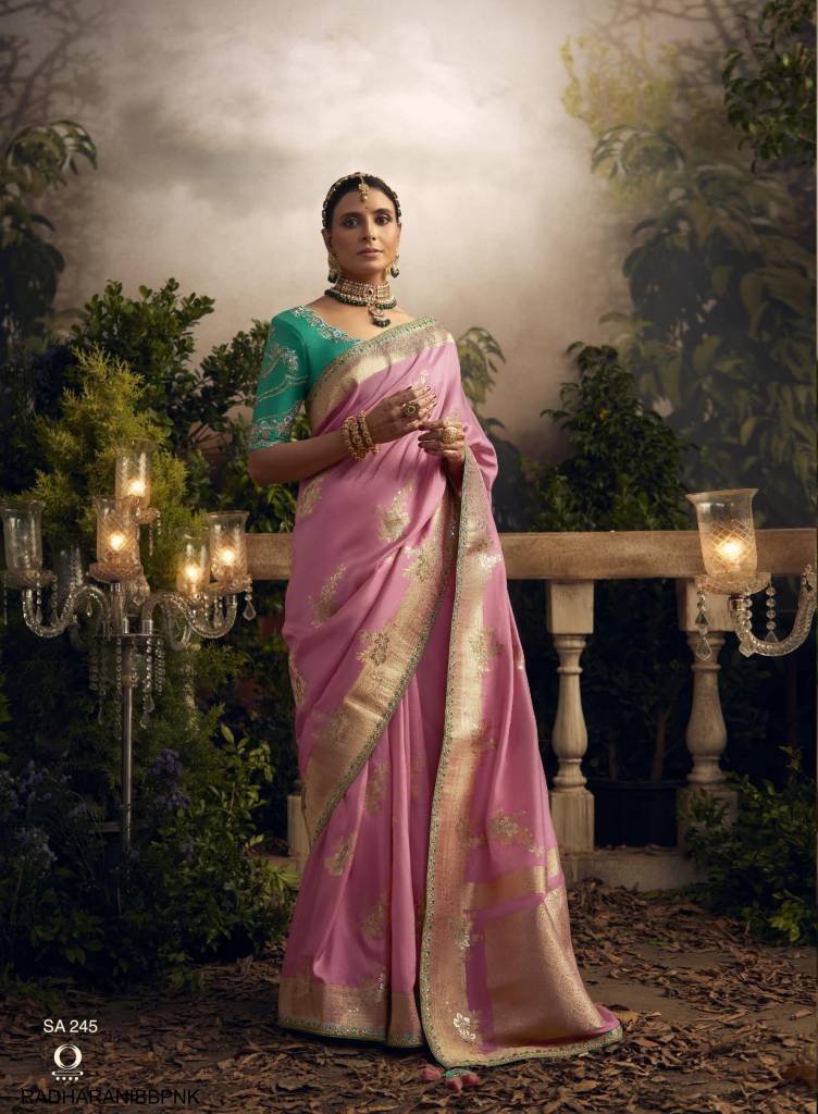 Pure Dola Silk with Fancy Based Fabric & Designer Embroidery Worked border & Designer Blouse