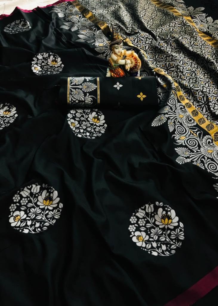 Buy Online Radhika Lichi Silk Black Color Saree At Best Price From Surati Fabric.