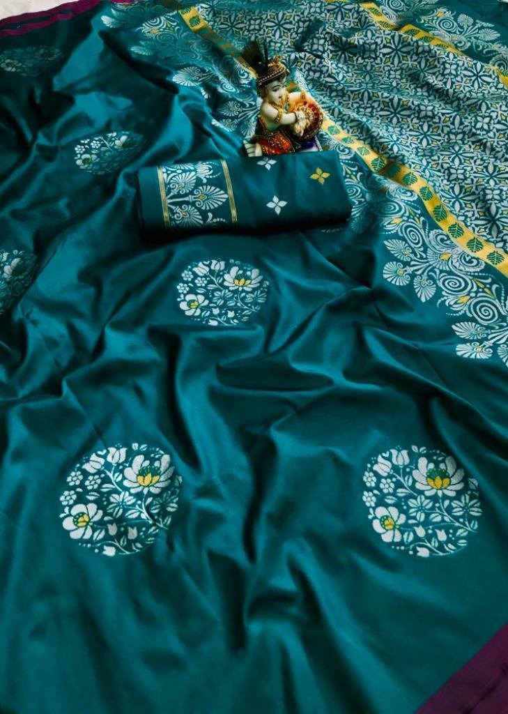 Buy Online Radhika Lichi Silk Rama Color Saree At Best Price From Surati Fabric.