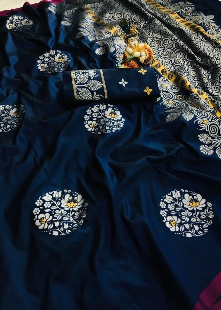 Buy Online Radhika Lichi Silk Royal Blue Color Saree At Best Price From Surati Fabric.