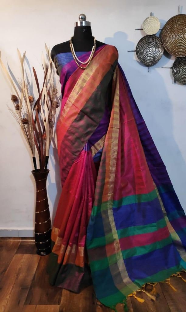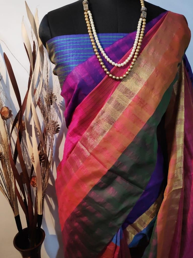 Indian Glory Silk With Zari Border Blue With Sky Blue Color Saree