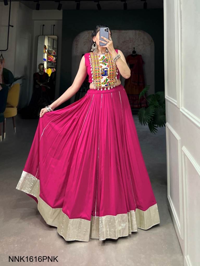 Lehenga Work : Plain And Lace Border With Gotta Patti Touch Up