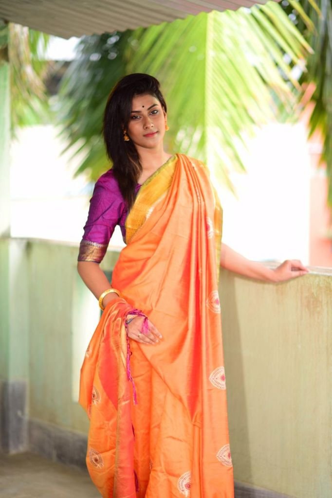 Soft Raw silk saree with embroidered work all over with zari woven temple border and pallu with contrast blouse piece. Ready stock available Premium quality assured