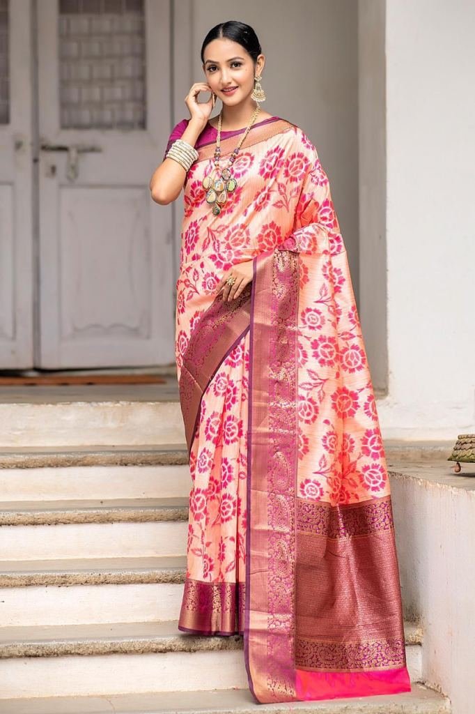 Saundrya Handloom Weaving Silk Saree With Rich Elegant Wooven Pallu n Border With Contrast Weaves in Full Saree n Contrast Blouse