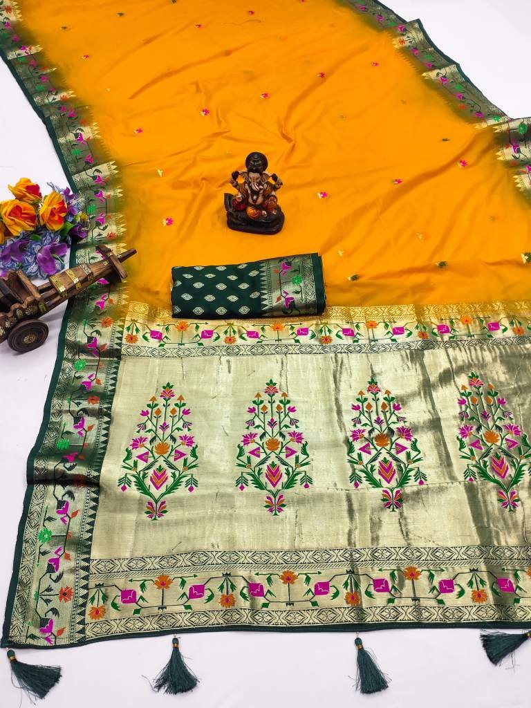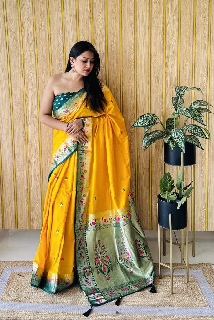 Premium Quality Paithani Soft Silk Sarees Weaved With Buttas Pattern All Over Saree With Contrast Concept Must Have Collections
