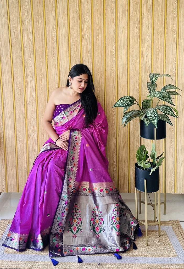 Premium Quality Paithani Soft Silk Sarees Weaved With Buttas Pattern All Over Saree With Contrast Concept Must Have Collections