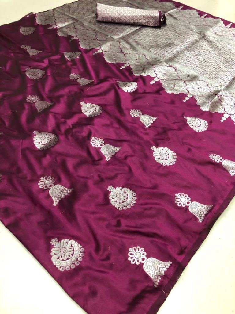 Buy Online Silver Jumka Zari Rani Colour Saree At Best Price From Surati Fabric.